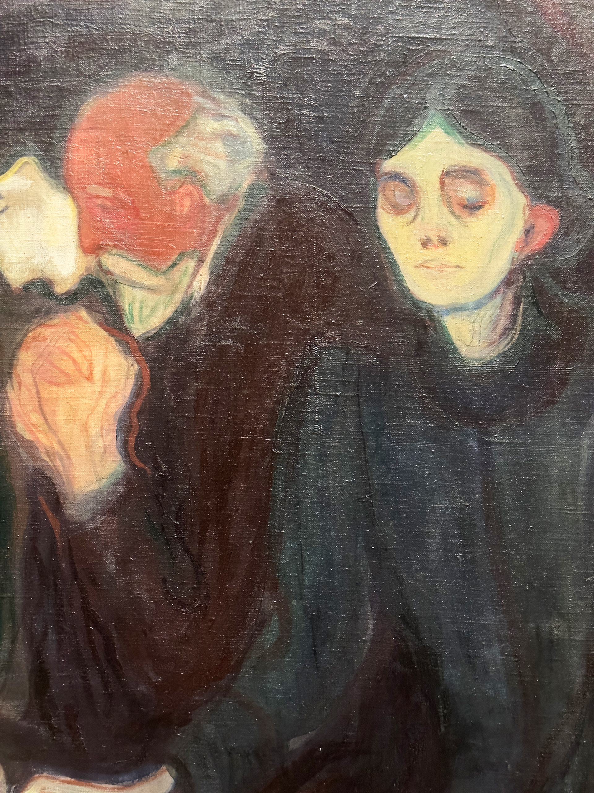 The composition of the painting itself speaks to the broader implications of grief in art. Munch positions the viewer as an outsider looking in, inviting a contemplation of grief that is both intimate and detached. This perspective allows the viewer to engage with the emotions displayed while also reflecting on their own experiences of loss. It is this universal quality that elevates the painting from a personal family portrait to a poignant exploration of human suffering and compassion.