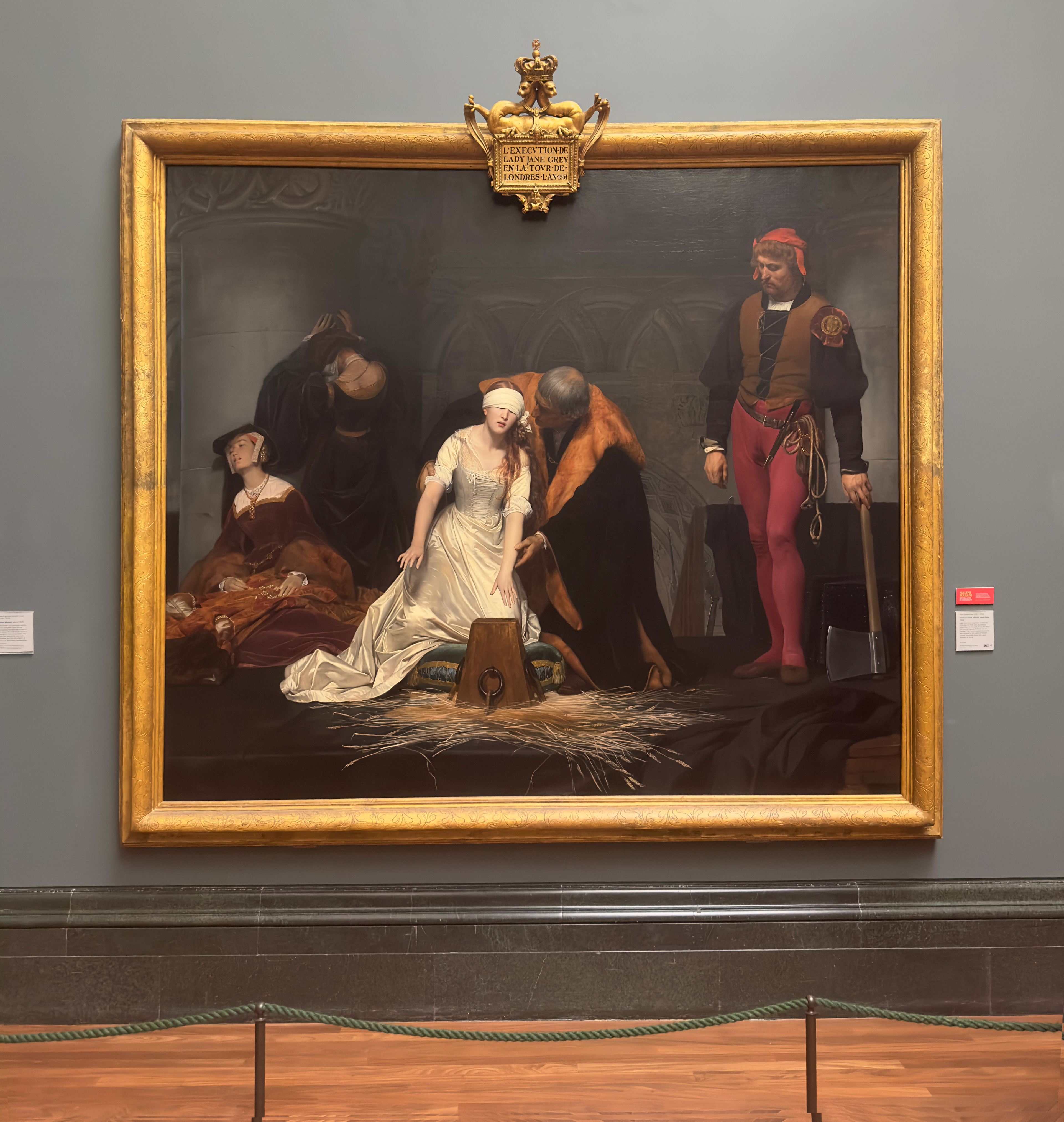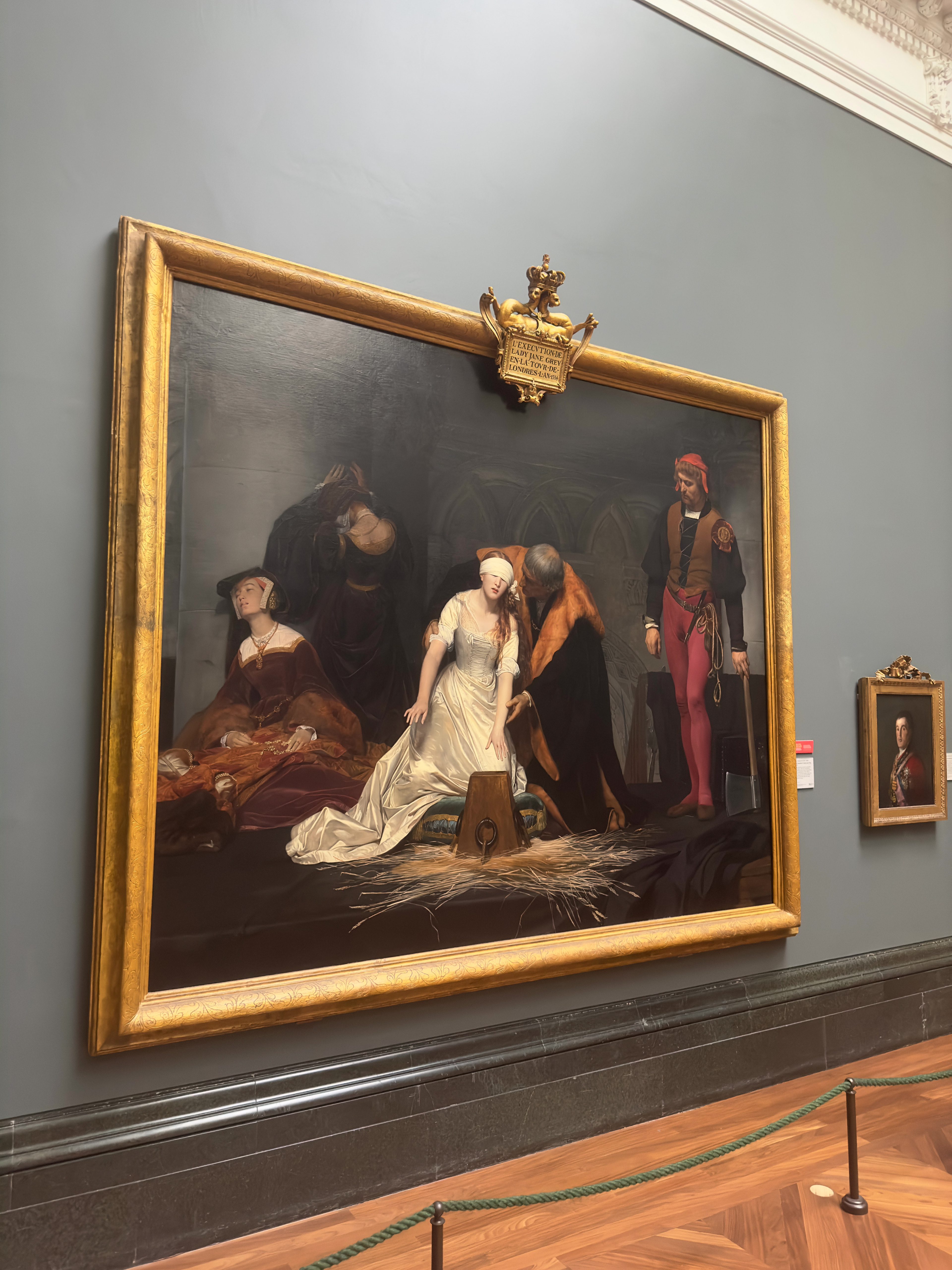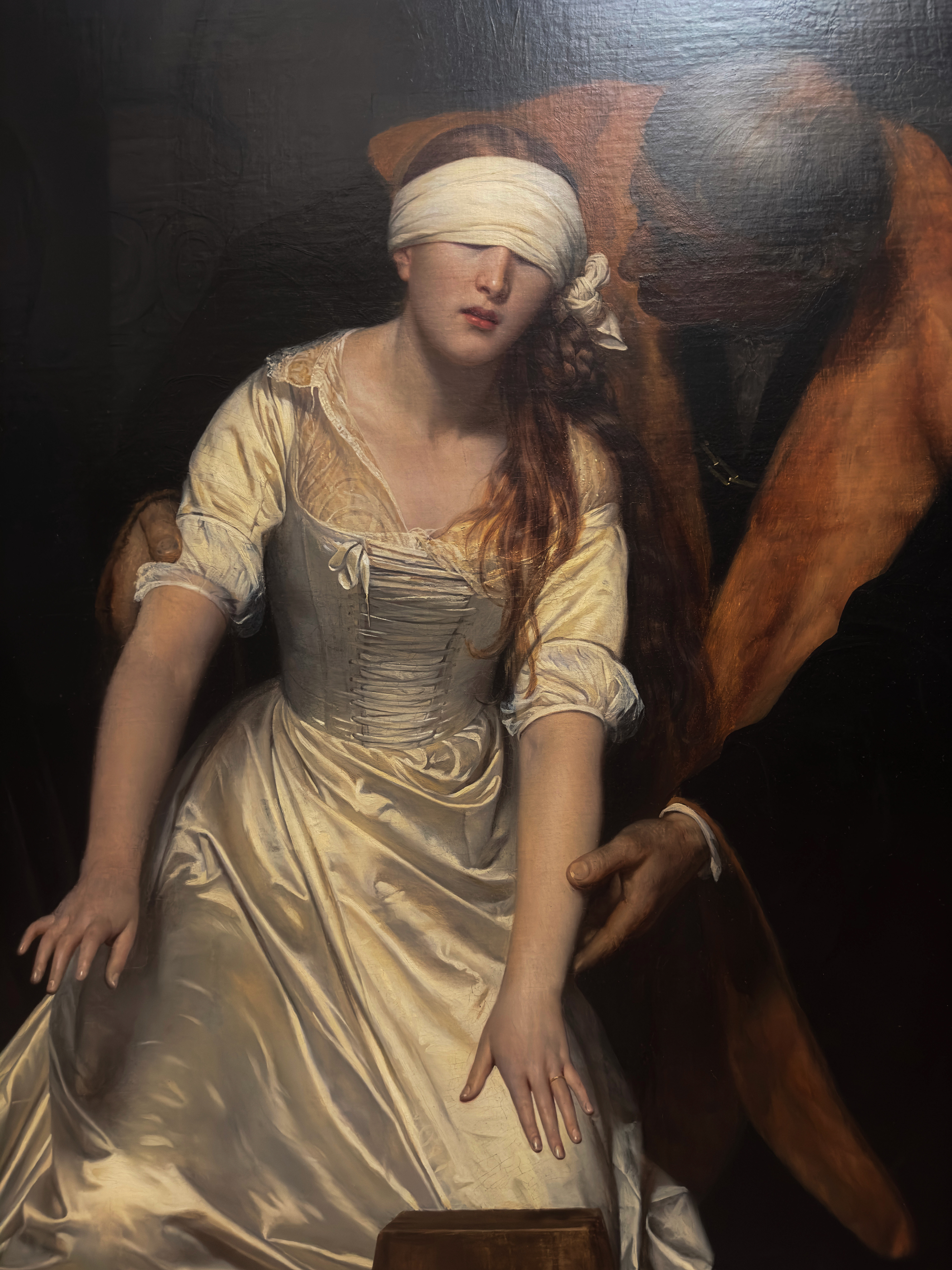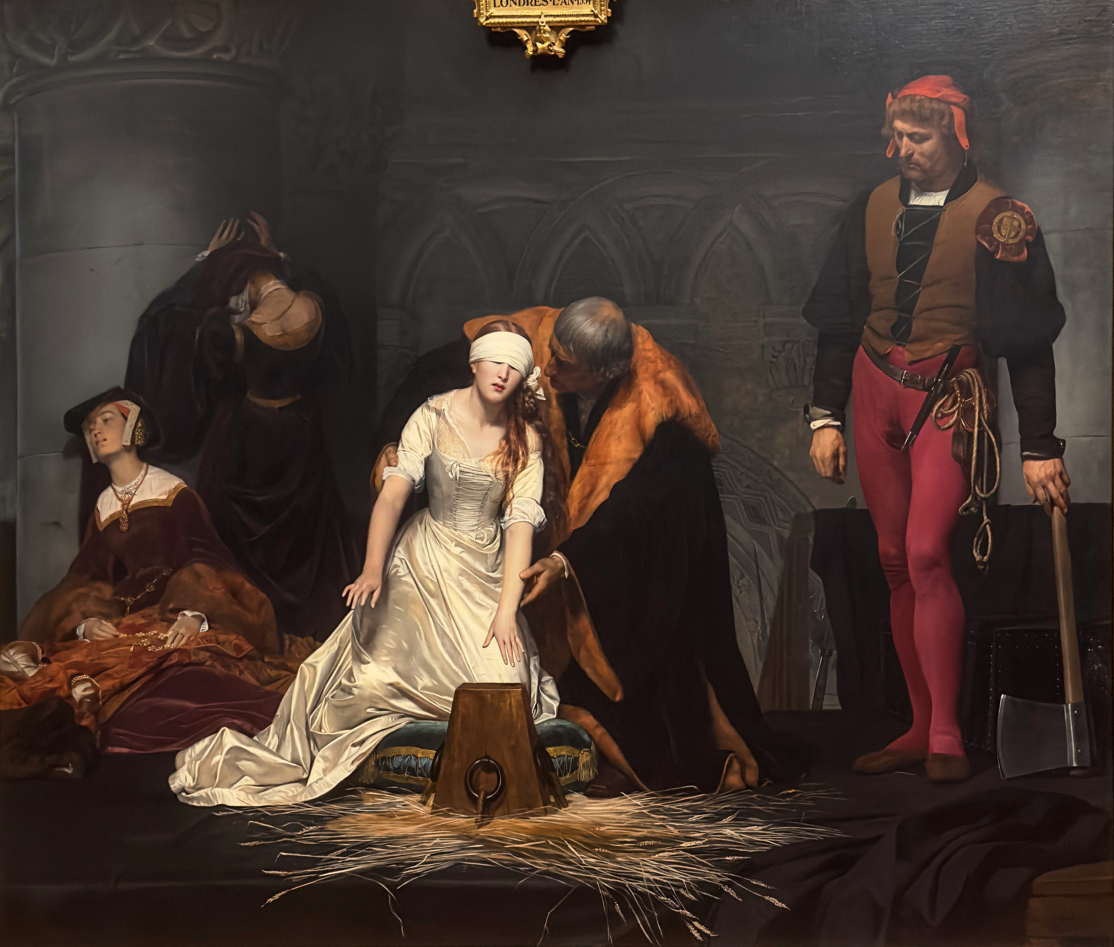 The choice to emphasize her vulnerability and youth (she was only about 17 at the time of her death) serves to underscore a narrative in which female power is both anomalous and doomed. Delaroche’s Lady Jane is not a reigning monarch but a victim, caught in the web of her own noble birth and the machinations of more powerful men.